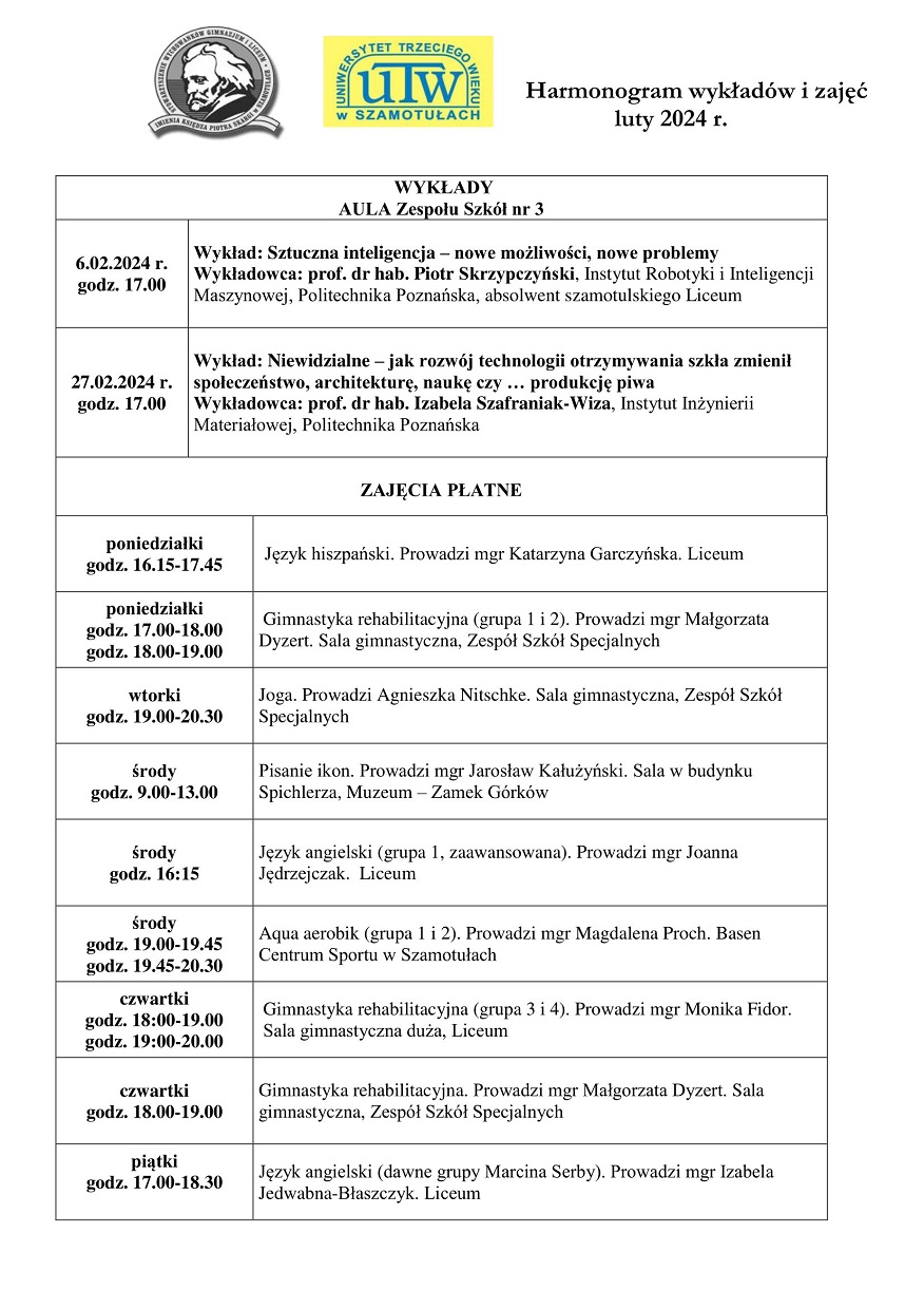 Zapraszamy na lutowe wydarzenia Uniwersytetu Trzeciego Wieku.